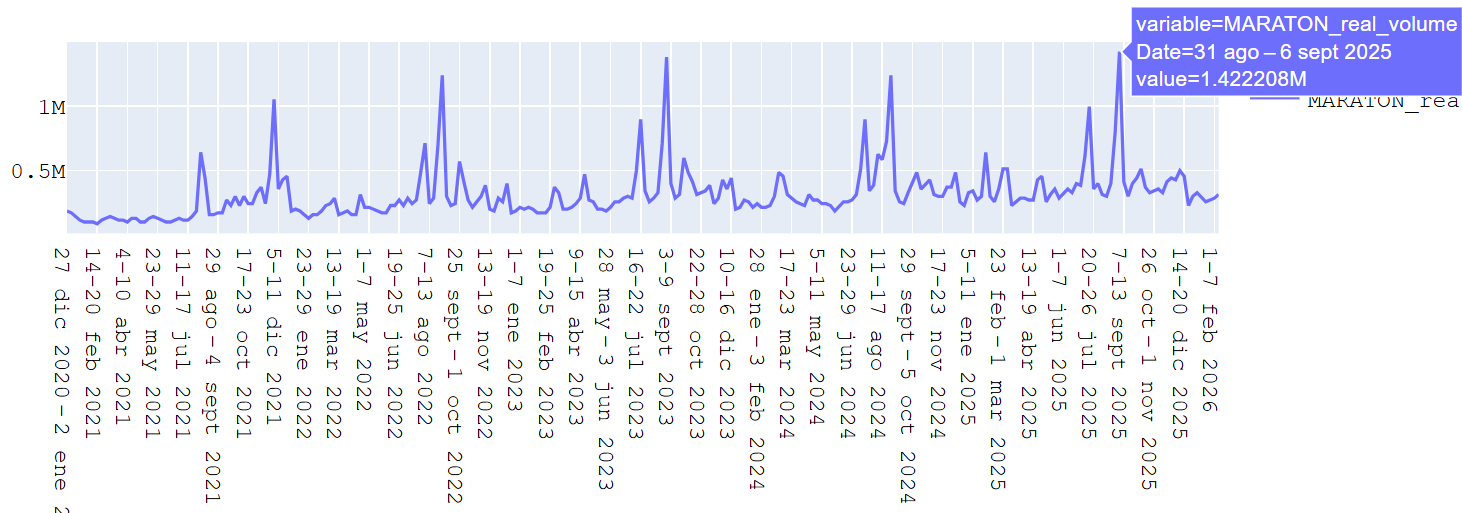 Más de 7,300 mexicanos participaron en los World Marathon Majors en 2025, generando una derrama de 419.7 millones de pesos solo en paquetes de viaje. El running se ha consolidado como un motor económico que impacta sectores de hotelería y gastronomía. La derrama económica total de los siete maratones más importantes del mundo ascendió a 3,272 millones de dólares en 2025. (vía elmister.substack.com)