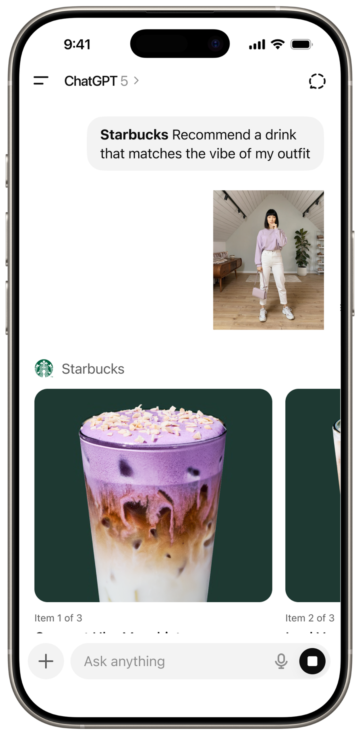 “A partir del 15 de abril, en ChatGPT, los clientes podrán explorar una nueva aplicación de Starbucks que les ayudará a encontrar una bebida de Starbucks según su estado de ánimo o la vibra del día. Solo tienes que decirle a ChatGPT qué te apetece, o incluso subir una foto que capture tu estado de ánimo y etiquetar a @Starbucks, y te ofrecerá bebidas de Starbucks que se ajusten a tu petición.“ (vía Starbucks)
